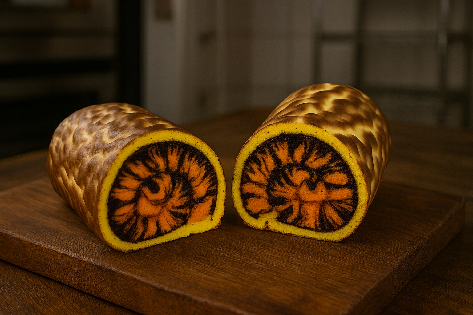 🧠 Tentang Bolu Gulung Tiger Roll (Motif Tegas & Gulungan Kokoh)